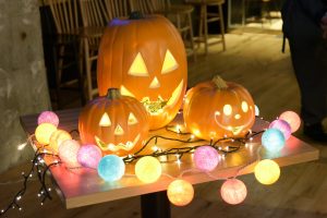会場の装飾もジャックオーランタンなど