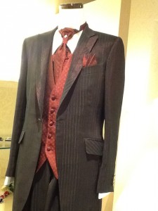 ボルドーの色味のタキシードです!